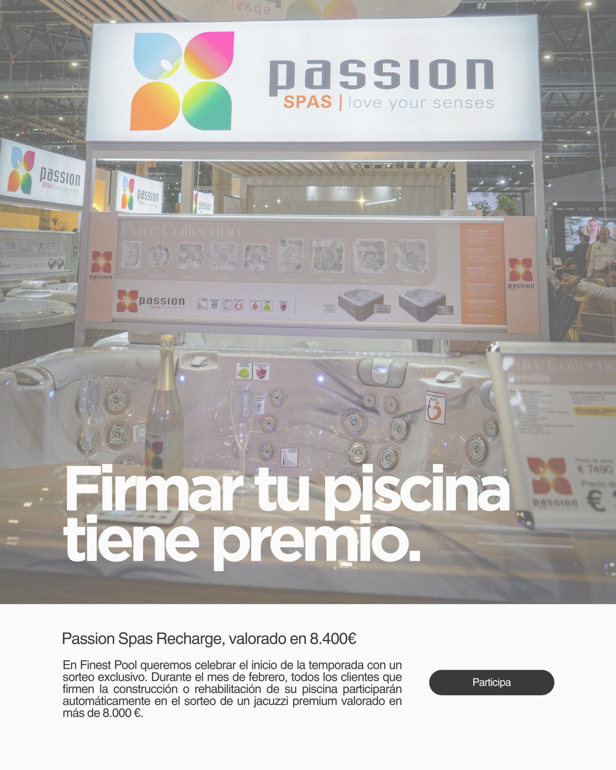 Con el objetivo de agradecer la confianza de sus clientes y promover sus servicios de construcción y rehabilitación de piscinas, FinestPool organiza el Sorteo de un Jacuzzi Passion Spas, que se regirá por las siguientes bases legales. La participación en el sorteo implica la aceptación íntegra de las presentes condiciones.